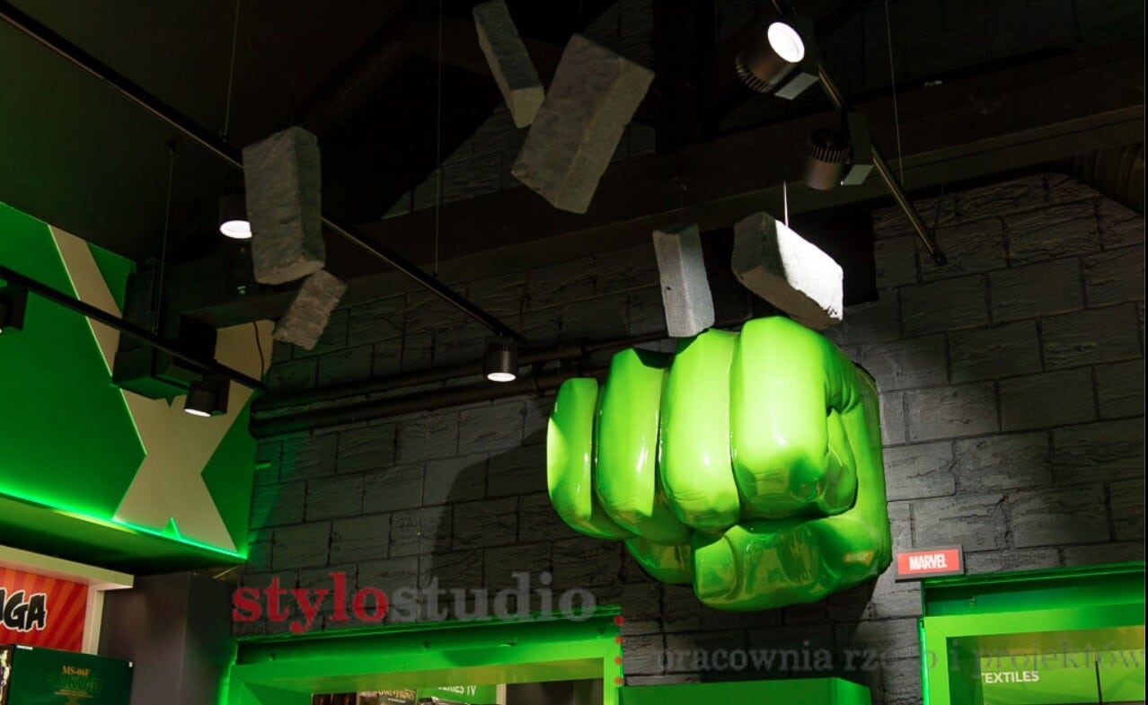 Pięść Hulka -wystrój paryskiego sklepu Marvel